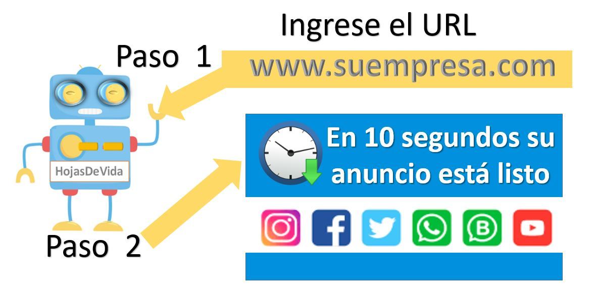 Nuestro robot® automatiza la construcción del aviso publicitario que HojasDeVida ofrece a las empresas que quieran vincularse.
